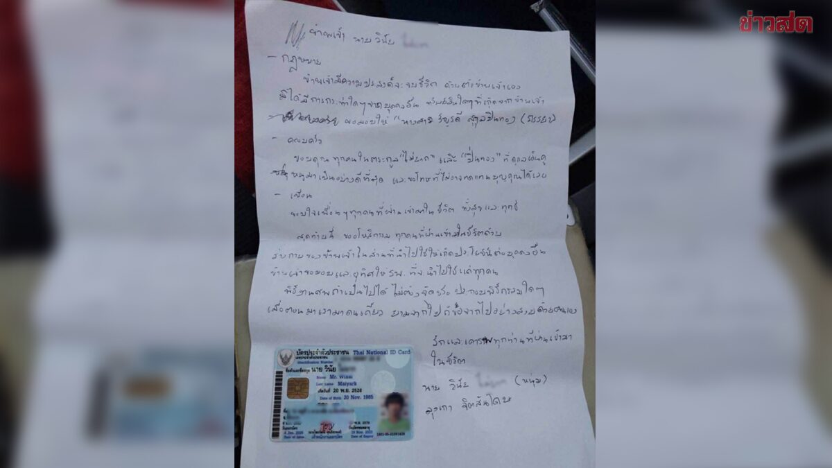 หนุ่มชัยนาท ป่วยซึมเศร้า เขียนจดหมายทิ้งไว้ ก่อนหายตัว ล่าสุดพบขับรถขึ้นภูทับเบิกตั้งแต่วานนี้ ยังไม่เจอตัว วันที่ 25 ธ.ค.2568 ผู้สื่อข่าวรายงานว่าโซเชียลในจังหวัดเพชรบูรณ์ได้โพสต์และแชร์ภาพ เพื่อตามหาชายชาวจังหวัดชัยนาท ที่เขียนจดหมายทิ้งไว้ พร้อมกับแนบบัตรประชาชนระบุ ชื่อนายวินัย อายุ 40 ปี โดยได้หายออกจากบ้านพร้อมกับรถยนต์กระบะอีซูซุ ดีแม็ก สีฟ้า ทะเบียน 1 ฒน 802 กรุงเทพมหานคร โดยล่าสุดพบว่ารถคันดังกล่าวได้ขับขึ้นไปบนภูทับเบิก อ.หล่มเก่า จ.เพชรบูรณ์ ในช่วงเวลาประมาณ 10.00 น.เมื่อวันที่ 24 ธ.ค.ที่ผ่านมา ทั้งนี้นายวินัยเป็นผู้ป่วยซึมเศร้า และมีอาการชักทางสมอง ทำให้หลงๆลืมๆในบางครั้ง ซึ่งในจดหมายมีข้อความว่า “ข้าพเจ้านายวินัย ไม่ยาก -กฎหมาย ข้าพเจ้ามีความประสงค์จะจบชีวิต ด้วยตัวข้าพเจ้าเอง มิได้มีการกระทำใดๆ จากบุคคลอื่น ทรัพย์สินใดๆที่เกิดจากข้าพเจ้าขอมอบให้ น.ส.รัญรดี (ภรรยา) – ครอบครัว ขอบคุณทุกคนในตระกูล “ไม่ยาก” และ “ปิ่นทอง”ที่ดูแลเอ็นดูหนูมาเป็นอย่างดีที่สุด และขอโทษที่ไม่อาจทดแทนบุญคุณได้เลย – […]
