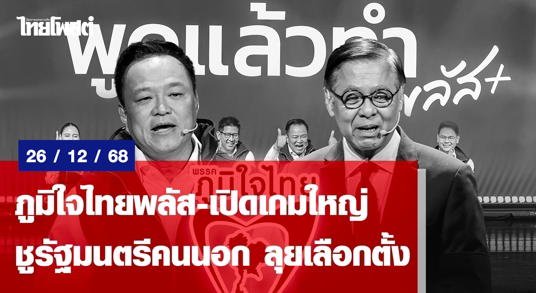 บรรยากาศการเมืองปลายปี 2568 ต่อเนื่องต้นปี 2569 เดินหน้าเข้าสู่โหมดเลือกตั้งเต็มรูปแบบ หลังคณะกรรมการการเลือกตั้งเตรียมเปิดรับสมัคร สส.ปลายเดือนธันวาคม ก่อนจะหย่อนบัตรในวันที่ 8 กุมภาพันธ์ 2569 พรรคการเมืองต่างเร่งเปิดตัวผู้สมัคร นโยบายหาเสียง และแคนดิเดตนายกรัฐมนตรี เพื่อช่วงชิงความได้เปรียบในช่วงโค้งสุดท้าย The post ภูมิใจไทยพลัส-เปิดเกมใหญ่ ชูรัฐมนตรีคนนอก ลุยเลือกตั้ง appeared first on .