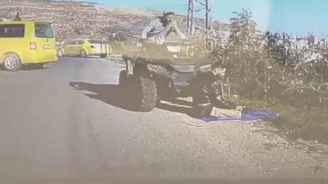 أظهر مقطع فيديو،اليوم الخميس، لقطات مصورة لسائق دراجة رباعية إسرائيلي يحمل سلاحا تابعا للجيش الإسرائيلي، وهو يتسارع عمدا ويدهس مصليا فلسطينيا على جانب الطريق قرب رام الله.