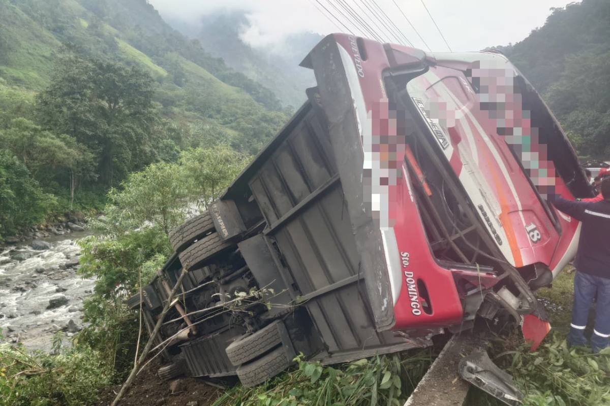 El ECU 911 emitió un reporte sobre los daños ocasionados por la caída de un bus a un barranco en la vía Alóag - Santo Domingo este jueves.