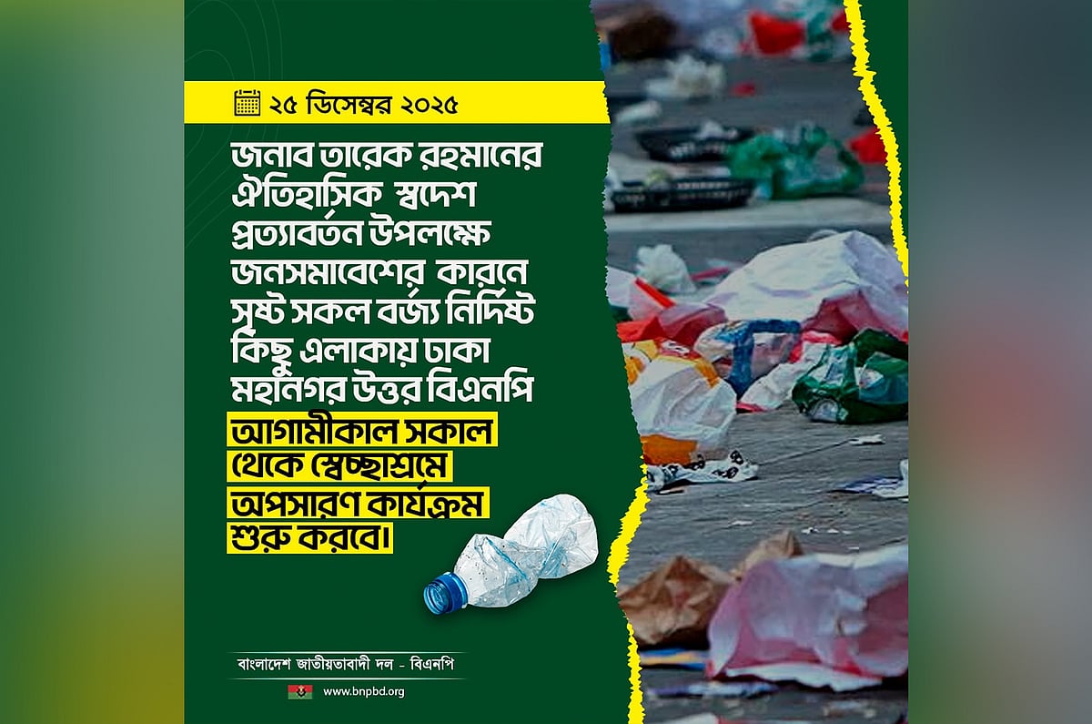 জুলাই ৩৬ এক্সপ্রেসওয়েসহ বিভিন্ন এলাকায় পরিচ্ছন্নতা কার্যক্রম চালাবে বিএনপি