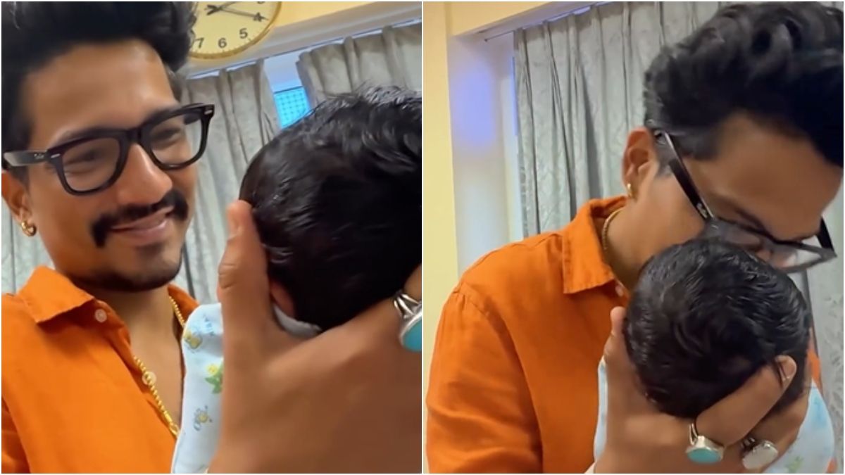 बेटे को पहली बार गोद में लेकर इमोशनल हुए हर्ष, किया दुलार, नहीं हटीं नजरें