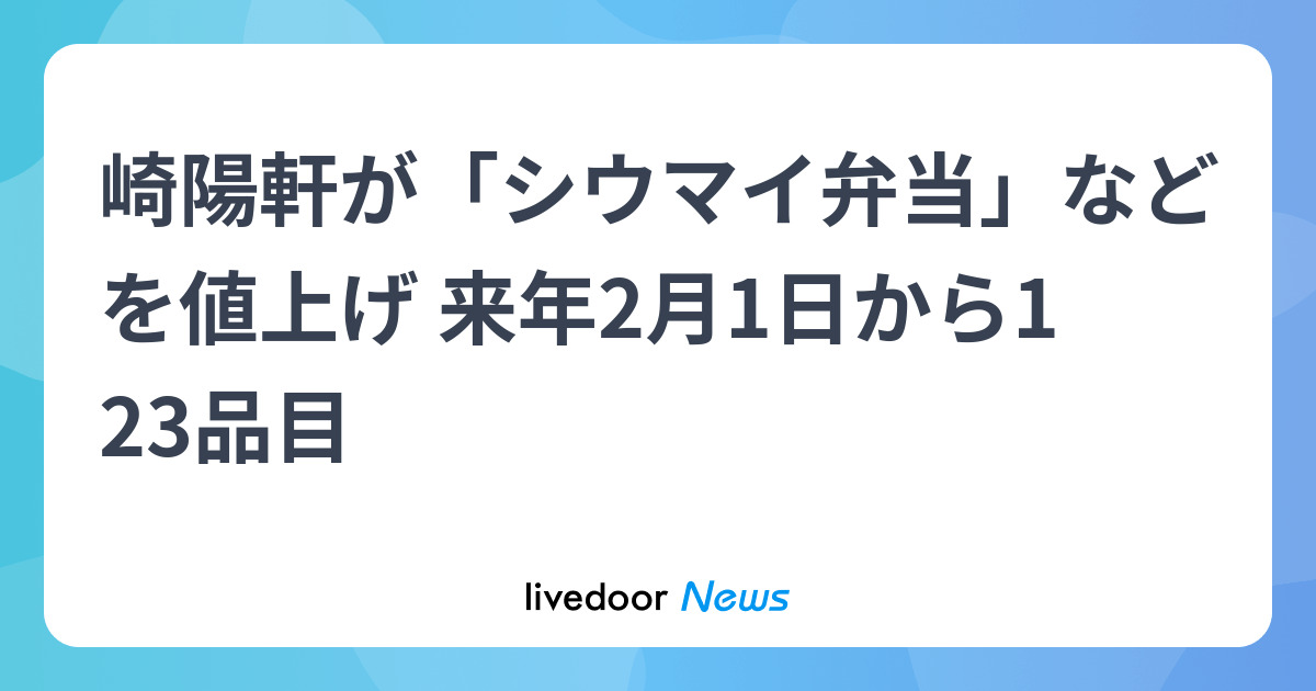 崎陽軒が「シウマイ弁当」などを値上げ 来年2月1日から123品目