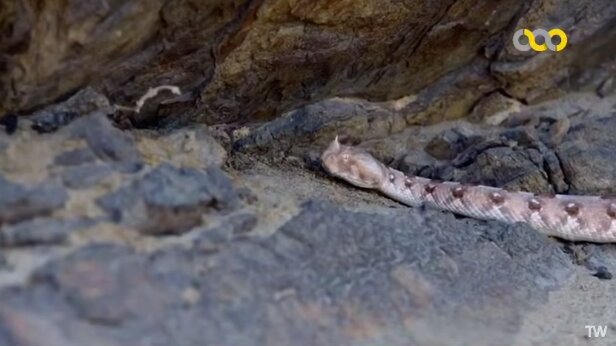 ببینید | عملیات شکار یک مارمولک توسط افعی شاخدار