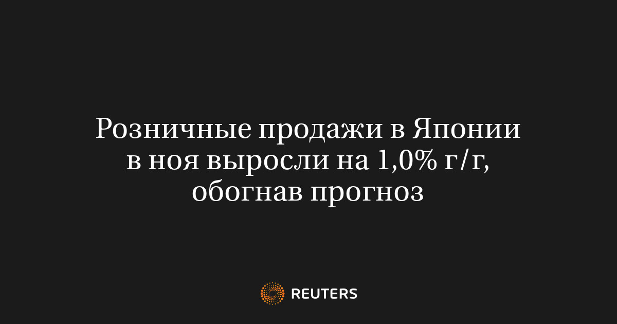 26 дек (Рейтер) - Объем розничных продаж в Японии в ноябре увеличился на 1,0% в годовом выражении, показали правительственные данные в пятницу.