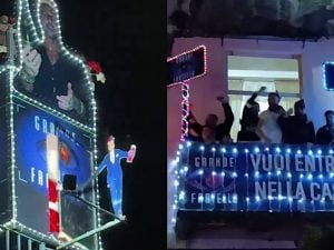 Signorini, Corona e il Grande Fratello: è il (solito) balcone show di Torre del Greco con le sue luci di Natale