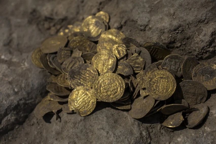 На археолошкиот локалитет Хирканија во Јудејската пустина, околу 17 километри југоисточно од Ерусалим, на територијата на денешниот Западен Брег, пронајдени се две златни монети и прстен од византискиот период, стари меѓу 4. и 7. век, соопшти Одделението за археологија при Цивилната управа на „COGAT“ при Министерството за одбрана, која управува со цивилните работи на Западниот Брег.