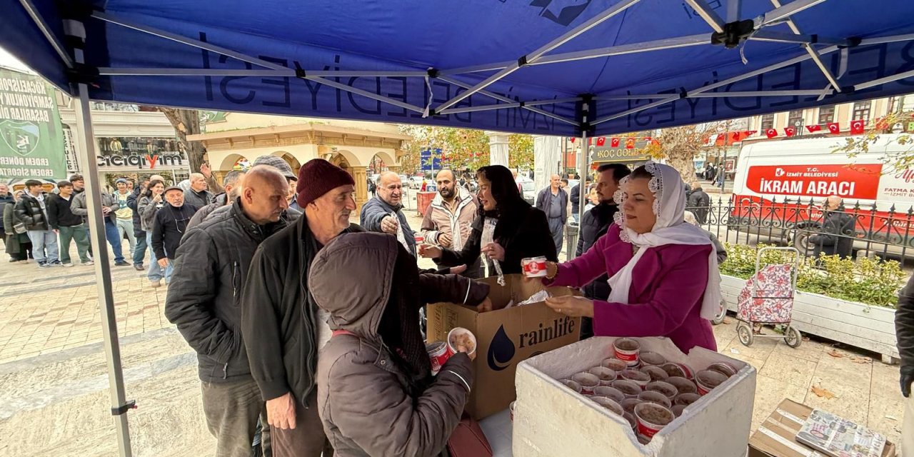 İzmit Belediye Başkanı Fatma Kaplan Hürriyet, Regaip Kandili için Fevziye Camii’nde kurulan stantta vatandaşlara helva ikramında bulundu