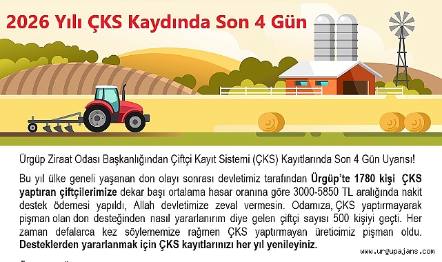 Çiftçi Kayıt Sistemi (ÇKS) Kayıtlarında Son 4 Gün Uyarısı! Don, Kuraklık vb. Destekler İçin...