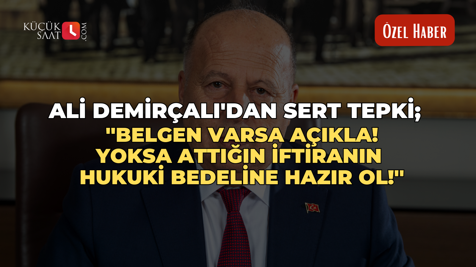 Ali Demirçalı'dan sert tepki; ''Belgen varsa açıkla. Yoksa attığın iftiranın hukuki bedeline hazır ol!'' Yüreğir Belediye Başkanı Ali Demirçalı, son günlerde bazı köşe yazıları ve sosyal medya mecralarında şahsı ve Yüreğir Belediyesi hakkında ortaya atılan iddialara sert tepki gösterdi.