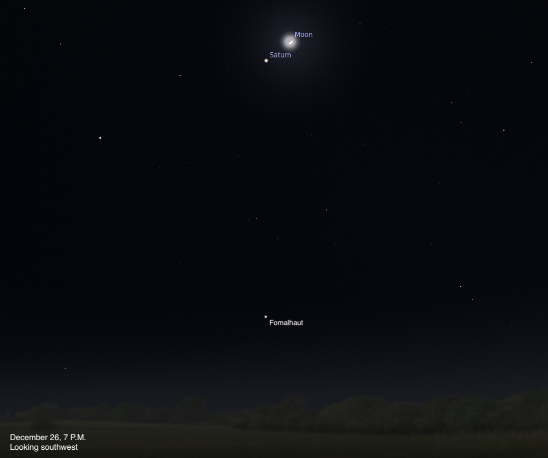 Looking for a sky event this week? Check out our full Sky This Week column. December 25: Celebrate with the Christmas Tree Cluster The Moon passes 4° north of Saturn at 11 P.M. EST. The pair is visible all evening, sinking toward the western horizon later on. Earlier in the evening, around 7 P.M. local time, the Continue reading "The Sky Today on Friday, December 26: The Moon shares the sky with Saturn" The post The Sky Today on Friday, December 26: The Moon shares the sky with Saturn appeared first on Astronomy Magazine .