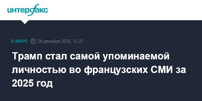 Президент США Дональд Трамп получил наибольшее внимание французских СМИ в 2025 году, его имя упоминалось почти в 1 млн материалов, свидетельствуют данные платформы мониторинга СМИ Tagaday, которые приводит в пятницу издание Ouest-France."Имя американского лидера написано или произнесено в более чем 947 тыс. материалов", - сообщает издание.