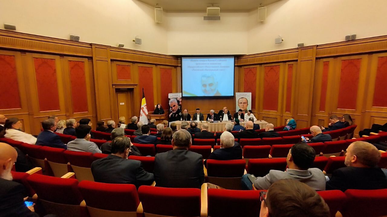 مسکو- ایرنا- آیین گرامیداشت سردار سپهبد قاسم سلیمانی جمعی از اندیشمندان و فعالان فرهنگی و سیاسی از روسیه، ترکیه، لبنان و آمریکا در مسکو برگزار شد.