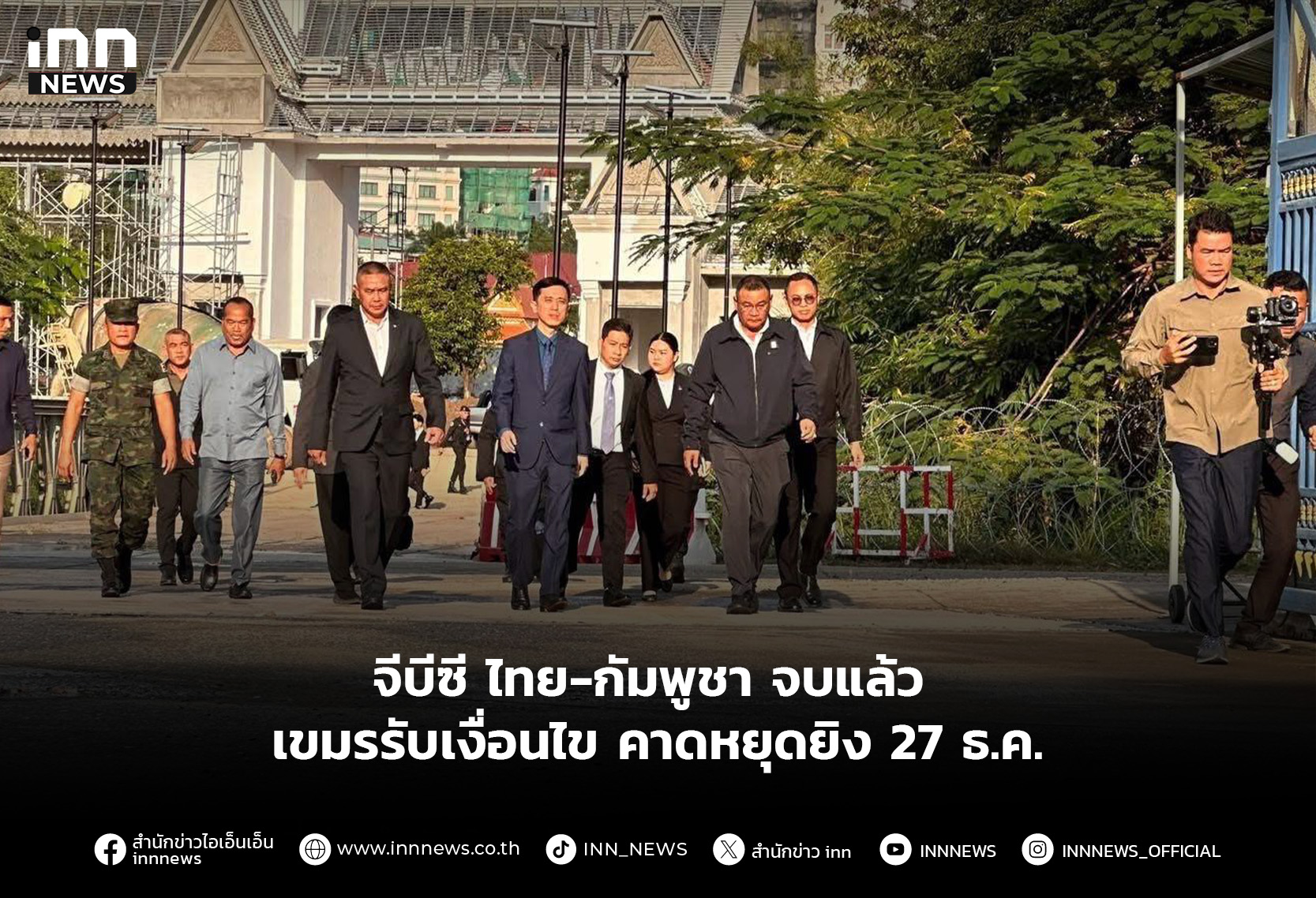 คาดหยุดยิง 27 ธ.ค.ติดตามสถานการณ์ 72 ชม. ประชุม จีบีซีฝ่ายเลขา ไทย-กัมพูชา เสร็จแล้ว ได้ร่างแก้ไขข้อตกลงฉบับที่ 6 ยังไม่เปิดเนื้อหา รอ สมช.ไฟเขียว พล.อ.ณัฐพล ลงนาม 27 ธ.ค.นี้
