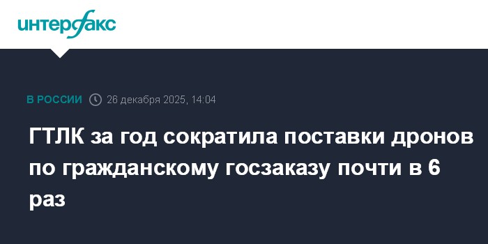 ГТЛК за год сократила поставки дронов по гражданскому госзаказу почти в 6 раз