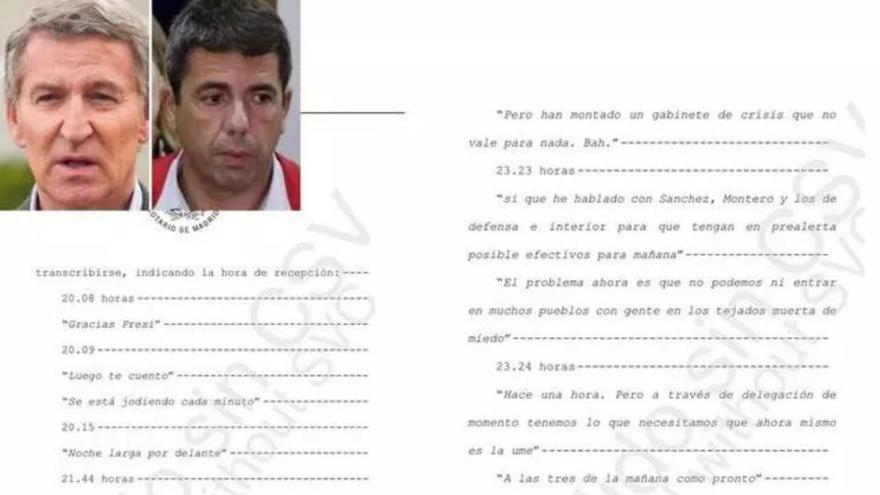 El presidente de la Generalitat el 29 de octubre de 2024, Carlos Mazón, no informó "en tiempo real" al líder del Partido Popular Alberto Núñez Feijóo el día de la dana que acabaría con la vida de 230 valencianos. En realidad, el entonces jefe del Consell fingió ante Feijóo que conocía la magnitud de la tragedia en los tres primeros mensajes que remitió al presidente del PP.