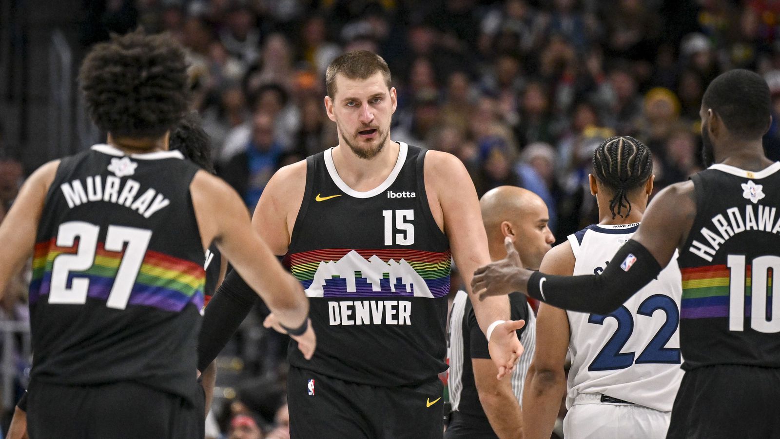 Margir eyða jólunum í tölvuleikjaspil og afslöppun en Nikola Jokic slær ekki slöku við og náði tölfræði sem hingað til hefur bara sést í tölvuleikjum, í 142-138 sigri Denver Nuggets gegn Minnesota Timberwolves í framlengdum leik.