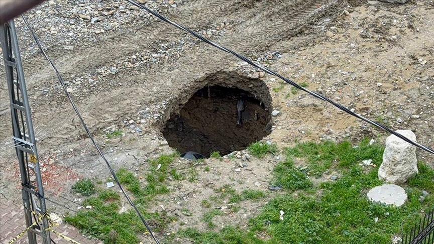 Esenyurt'ta, boş arazide park halindeki otomobilin göçükle oluşan çukura düşme anı cep telefonu kamerasıyla kaydedildi.