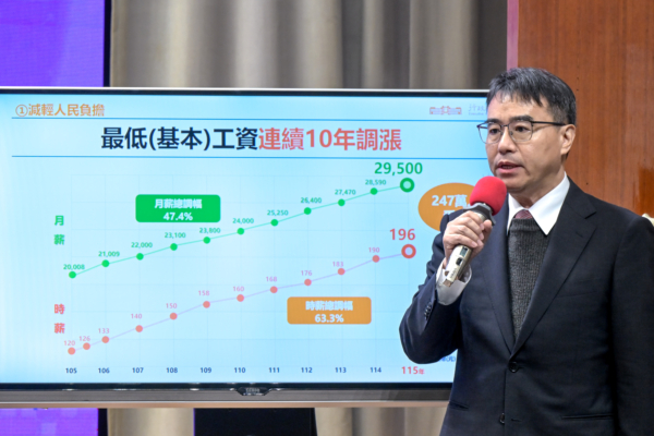 行政院会26日公布明年元月起实施的重大政策及惠民措施,内容涵盖基本工资调调涨、婚育支持、劳动权益与弱势照顾等面向。(宋碧龙/大纪元)