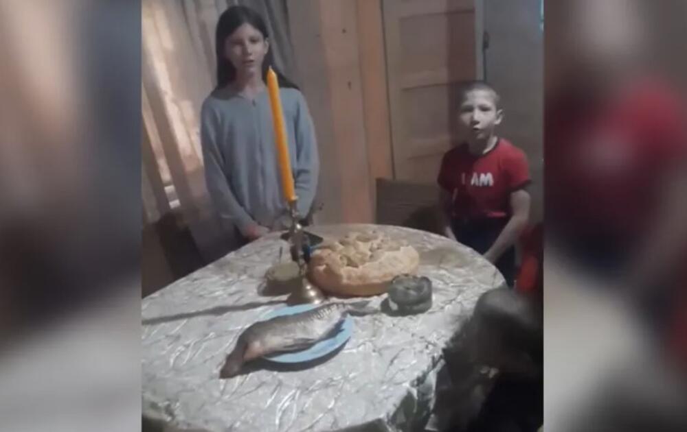 Na video snimku vidi se kako brat i sestra seku kolač, dok je na stolu ispred njih zaista prilično skromna gozba - slavski kolač i tanjir u kom se nalazi samo jedna riba