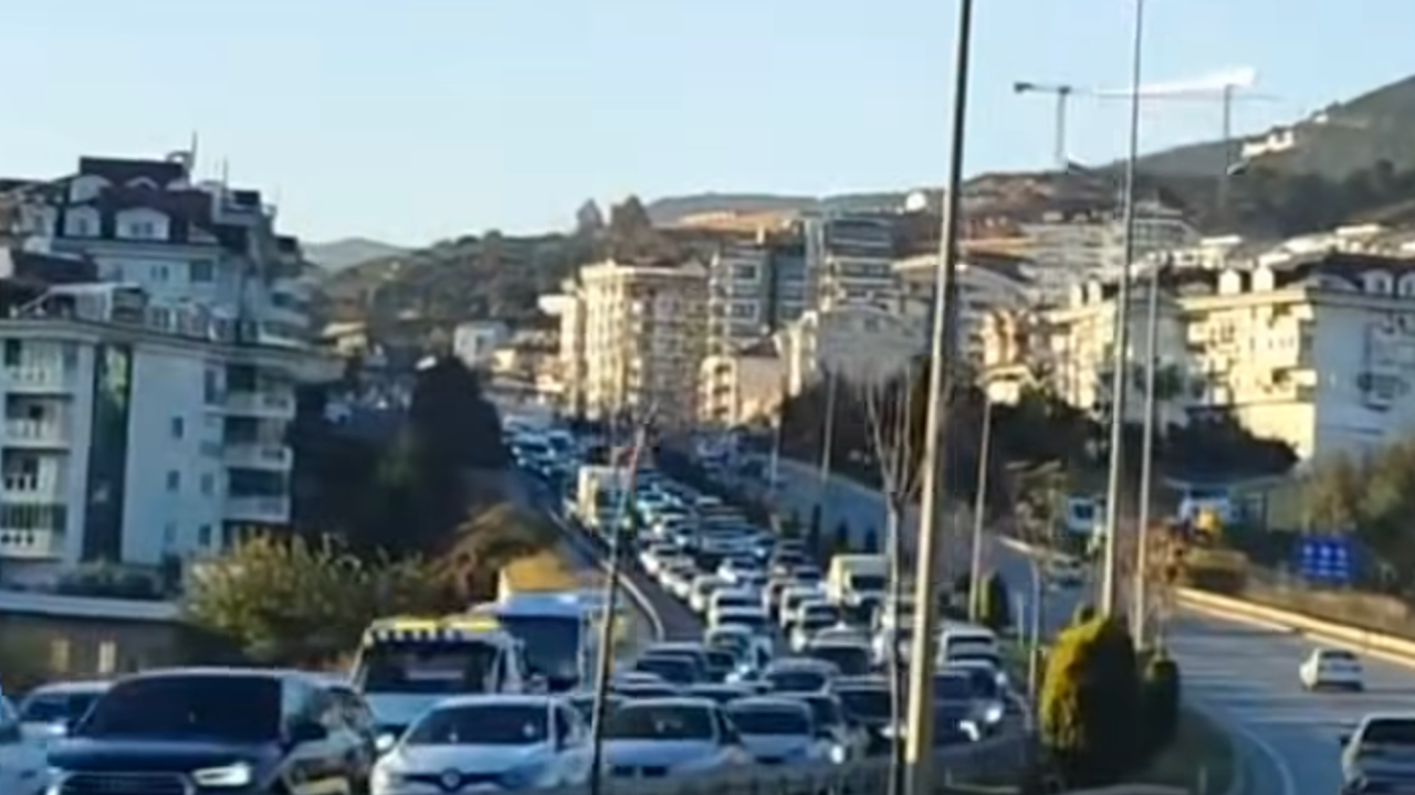 Gazipaşa istikametine doğru oluşan uzun araç kuyruğu nedeniyle Alanya Çevre Yolu’nda trafik durma noktasına geldi.