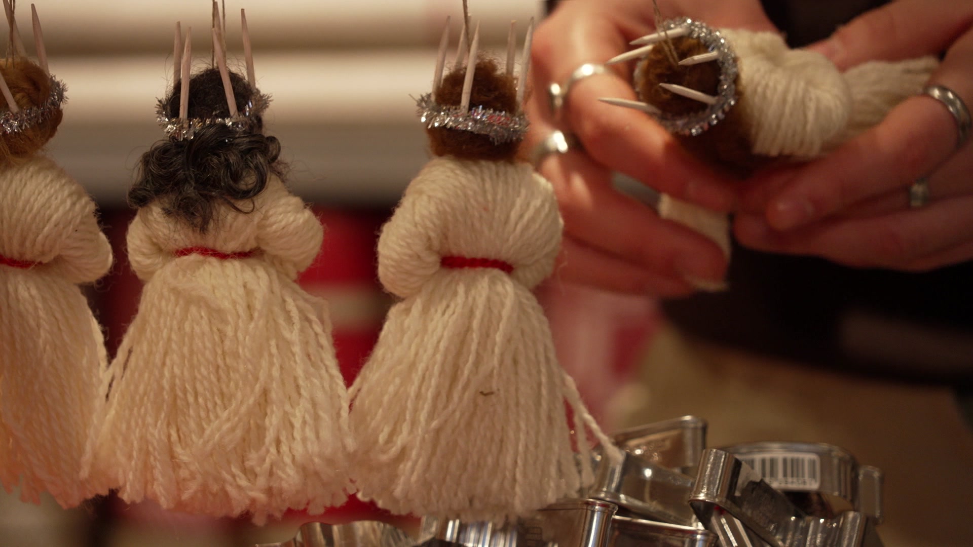 Maria Högberg har i snart tio år vikt pappersstjärnor och har i år skapat över 800 stycken. Hennes intresse väcktes när hon arbetade på Leksaksmuseet och byggde en julutställning. – Jag jobbade på Leksaksmuseet och byggde utställning där. Till den här utställningen skulle det kläs sex granar till jul. Så jag köpte serietidningar på loppis och vek till den granen. Och då tänkte jag, det här blir ju fint, säger Högberg. Utmaningar för slöjdare Att skapa vackra alster och ägna livet åt slöjden är en dröm för många, men det är svårt att försörja sig på hantverket. Många slöjdare har andra jobb vid sidan om. – Ja, det är en stor utmaning. Jag tror att det är jättesvårt. Finns det någon hantverkare som inte har ett annat jobb vid sidan om? Det vet jag inte. – Jag kan inte försörja mig bara på mitt hantverk. Det går inte, säger Maria Högberg. Annika Holmdahl, kommunikatör på Svenska Hemslöjdsföreningarnas Riksförbund, bekräftar utmaningarna: – Det är ju en ständig utmaning för den som slöjdar, säger Annika Holmdahl. Materialbrist - svenskt ull svårt att få En annan utmaning är tillgången till svenskt material, som ofta är både svårt och dyrt att få tag på. Särskilt svensk ull är svår att tillvarata. – Det finns stora utmaningar bland naturmaterialet i Sverige. Bland annat om man ser till den svenska ullen. Stor andel av den som finns i Sverige slängs, bränns eller grävs ner. För att det inte finns en organiserad marknad eller möjlighet att sälja den, säger Annika Holmdahl. Försöker skapa ullmarknad Det finns däremot initiativ som arbetar med att tillgängliggöra den svenska ullen. Swedish Wool Initiative har samlat aktörer från hela värdekedjan för att öka användningen av svensk ull och skapa en mer hållbar och cirkulär industri. Johan Sidenmark, projektledare för Swedish Wool Initiative, ser en positiv utveckling: – Det är inte klokt att man har eldat upp den här råvaran tidigare. Men nu har man då knäckt den här frågan lite och förstått vilka krav du ska ställa på ullen och vad det är för sorts ull. Och det gör ju att man kan få fram garner. Vissa garner är väldigt eftertraktade och framför allt inom hantverk, säger Sidenmark.