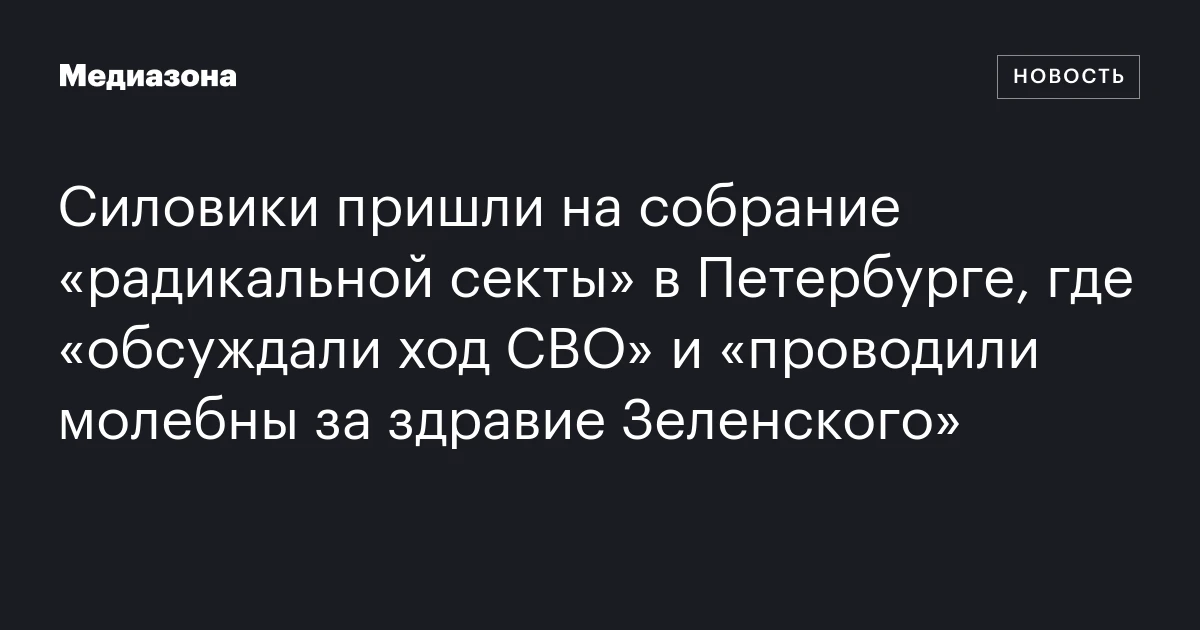 Силовики пришли на собрание «радикальной секты» в Петербурге, где «обсуждали ход СВО» и «проводили молебны за здравие Зеленского»