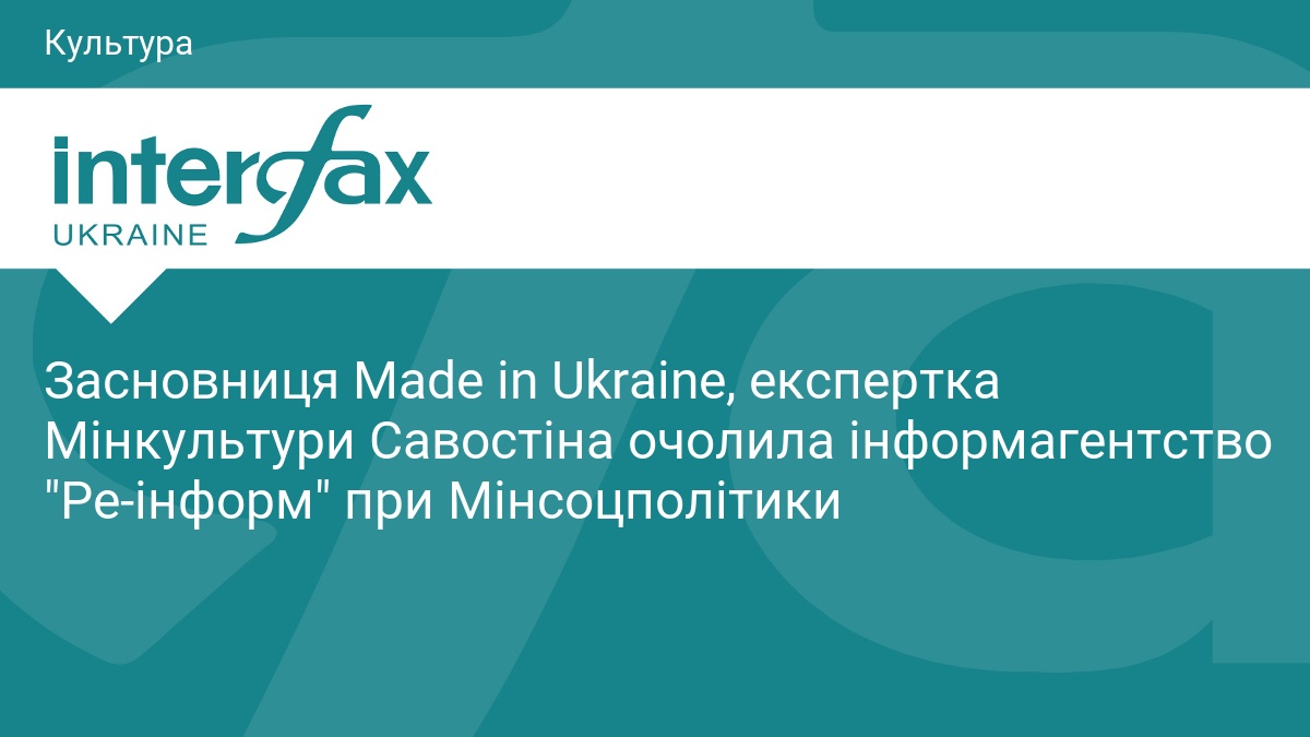 Засновниця проєкту Made in Ukraine, волонтерка, експертка з нематеріальної культурної спадщини Офісу підтримки відновлення при Міністерстві культури та стратегічних комунікацій Юлія Савостіна очолила інформаційне агентство "Ре-інформ" при Міністерстві соціальної політики, сім'ї та єдності України.