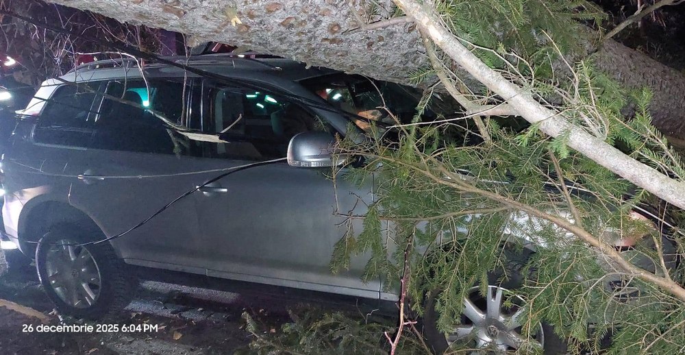 Mai mulți copaci au fost doborâți vineri seara în Sinaia, din cauza intensificărilor puternice ale vântului.