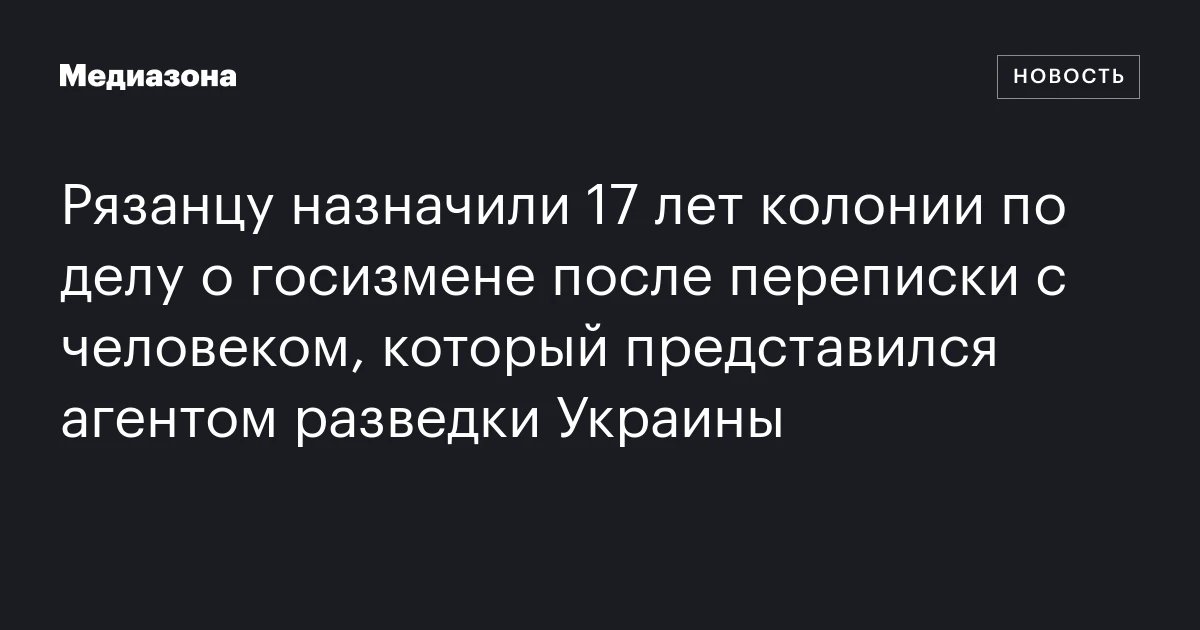 Рязанцу назначили 17 лет колонии по делу о госизмене после переписки с человеком, который представился агентом разведки Украины