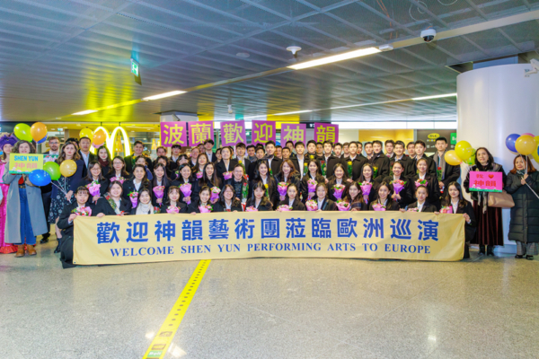 2025年12月26日,美国神韵巡回艺术团抵达波兰华沙机场,粉丝热情接机。(张清飖/大纪元)