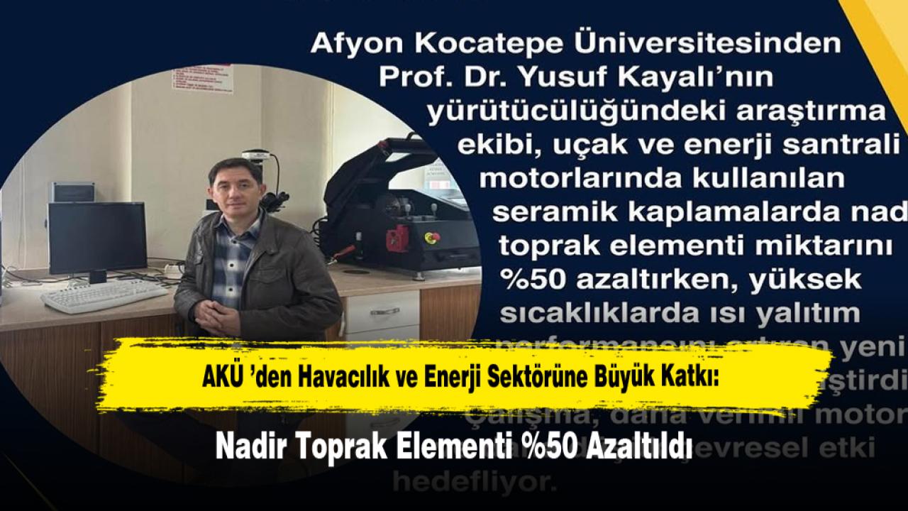 Afyon Kocatepe Üniversitesi’nde yürütülen bilimsel çalışma kapsamında, uçak ve enerji santrali motorlarında kullanılan seramik kaplamalar için geliştirilen yeni malzeme ile nadir toprak elementi kullanımı yüzde 50 oranında azaltıldığı belirtildi.