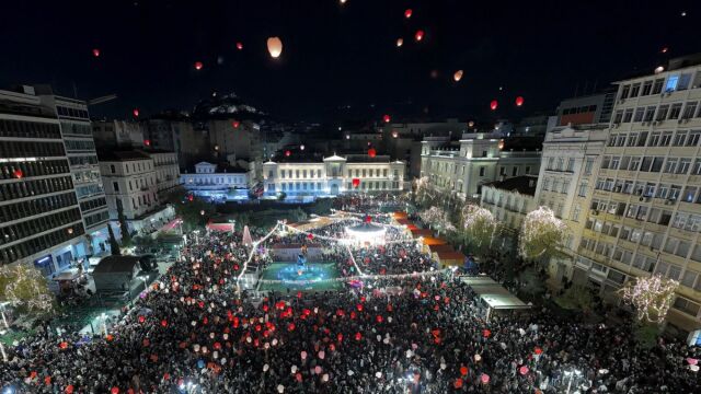 Πλήθος κόσμου στην πλατεία Κοτζιά για την εκδήλωση του Δήμου Αθηναίων. Περίπου 3.000 χάρτινα βιοδιασπώμενα φαναράκια ανέβηκαν στον ουρανό, δημιουργώντας μια παραμυθένια ατμόσφαιρα