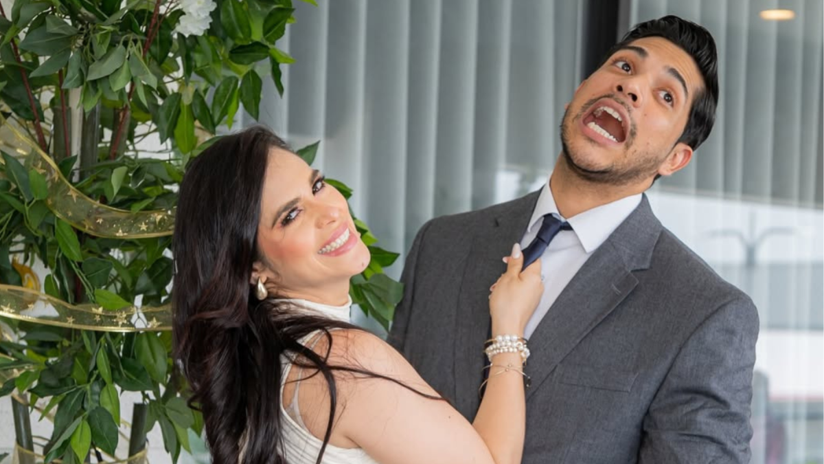 La actriz y el ex chico reality planean la boda eclesiástica para julio. Ella sorprendió al dejar el negro de lado y casarse con un vestido perla