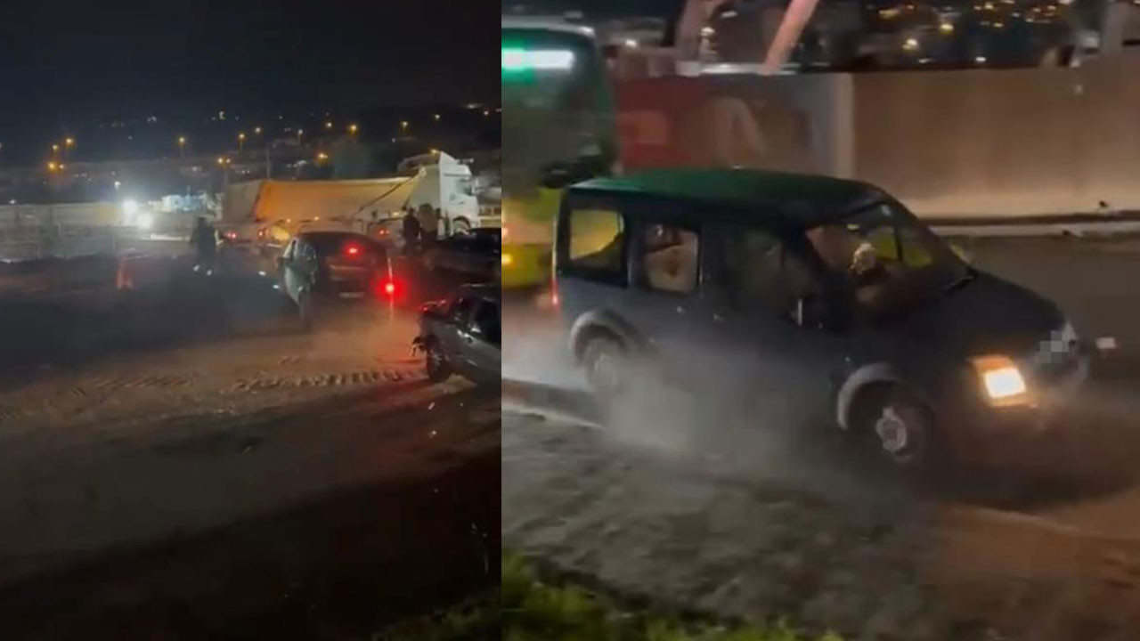 Kocaeli'nin Derince ilçesinde meydana gelen olayda öfkelenen hafif ticari araç sürücüsü, taksi, yolcu otobüsü ve otomobile çarptı. Ortalık savaş alanına döndü.