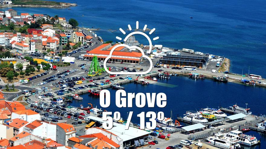 El 27 de diciembre de 2025, O Grove se presentará con un tiempo mayormente despejado, ideal para disfrutar de actividades al aire libre. Desde la medianoche hasta las primeras horas de la mañana, el cielo estará cubierto de nubes altas, pero a medida que avance el día, se espera que estas den paso a un ambiente despejado. Las temperaturas oscilarán entre los 5 y 13 grados , alcanzando su punto máximo en las horas centrales de la tarde, lo que permitirá disfrutar de un tiempo fresco pero agradable.