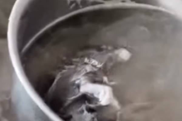 2025年12月25日,广西百色一网民发布视频称,在外吃早餐,加汤时从店家锅中捞出一只疑似老鼠的动物尸体。(视频截图)