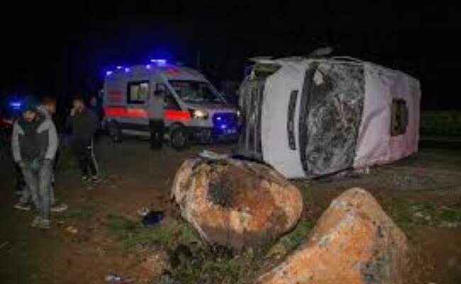 Diyarbakır’ın Yenişehir ilçesinde, işçileri taşıyan bir minibüsün devrilmesi sonucu 16 kişi yaralandı.