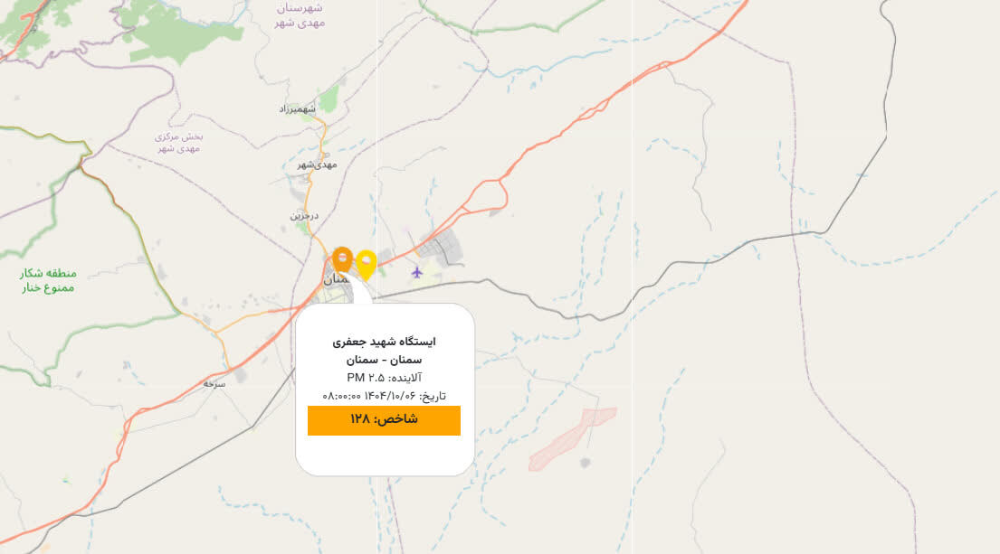 سمنان - ایرنا - همزمان با افزایش غلظت آلاینده های جوی، کیفیت هوای شهرهای سمنان، گرمسار و ایوانکی در وضعیت ناسالم برای گروههای حساس قرار گرفت و پیشبینیها از تداوم نسبی آلودگی هوا در مناطق غربی و صنعتی استان در اوایل هفته جاری حکایت دارد.