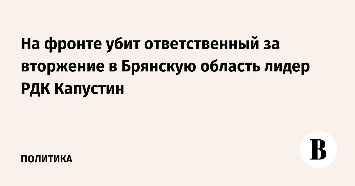 На фронте убит ответственный за вторжение в Брянскую область лидер РДК Капустин