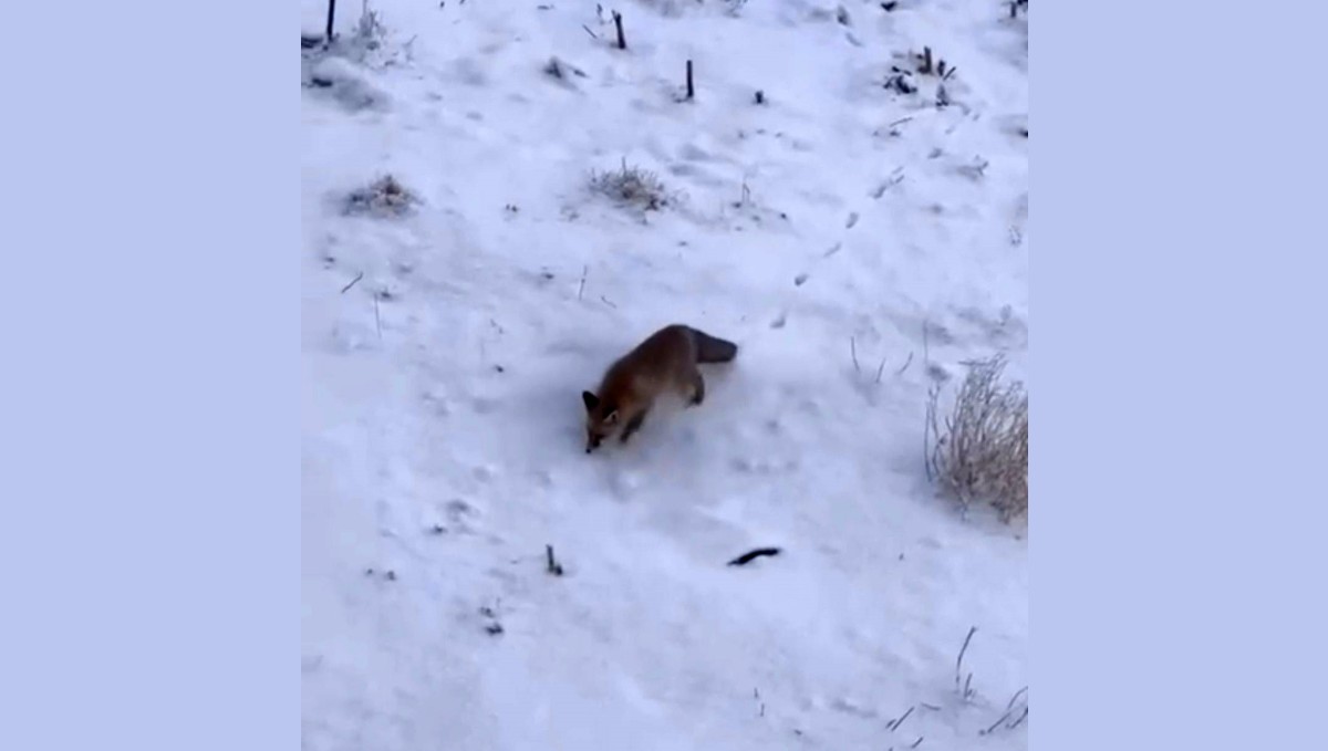 Ağrı'nın Diyadin ilçesinde aç kalan tilkiler şehir merkezinde görüntülendi.
