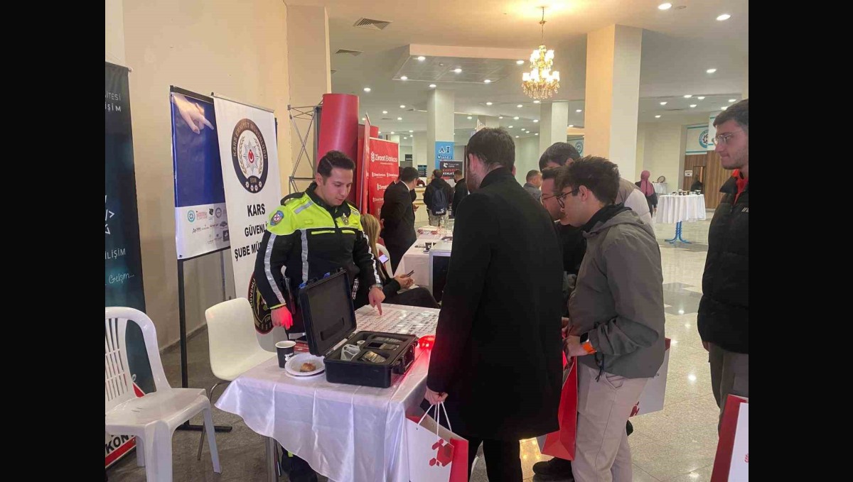 Kars'ta üniversite öğrencilerine yönelik trafik güvenliği bilincinin artırılması amacıyla trafik araç ve gereçlerinin tanıtıldığı bilgilendirme etkinliği düzenlendi.