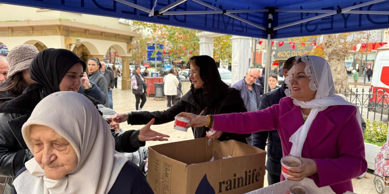 İzmit Belediye Başkanı Fatma Kaplan Hürriyet, Regaip Kandili için Fevziye Camii’nde kurulan stantta vatandaşlara helva ikramında bulundu