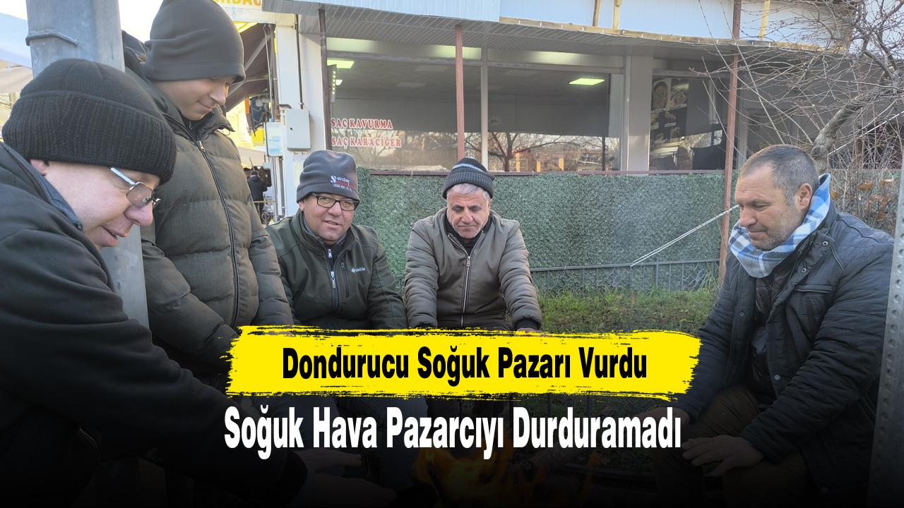 Şuhut ilçesinde eksi derecelere düşen hava sıcaklıkları nedeniyle pazar esnafı, soğuk havaya karşı ateş yakarak tezgâh başında satış yapmaya devam etti.