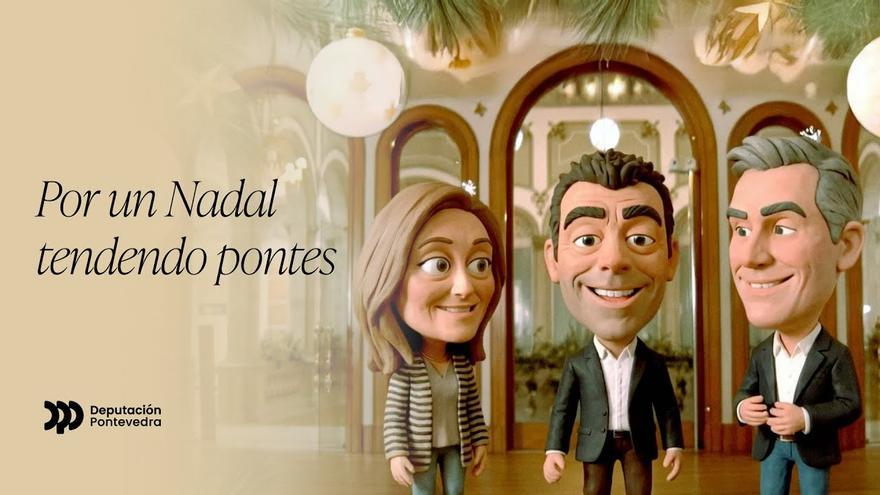El presidente de la Diputación de Pontevedra, Luis López, junto con los vicepresidentes Rafa Domínguez y Luísa Sánchez, felicitan la Navidad a toda la población de la provincia a través de un vídeo especial en el que los tres dirigentes «animados» comparten sus impresiones sobre estas fiestas y sus deseos para el año nuevo, para rematar con una petición: «aparcar las diferencias» y que «haya puentes que nos unan».