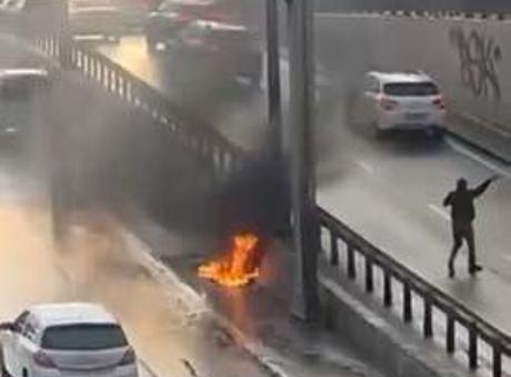 Beylikdüzü D-100 Otoyolu'nda seyir halindeki bir motosiklet henüz bilinmeyen nedenle alev alev yandı. Yangın itfaiyenin müdahalesiyle söndürüldü. Beylikdüzü Yakuplu Mahallesi D-100 Otoyolu'nda saat 09.30 sıralarında seyir halindeki bir motosiklette bilinmeyen bir nedenle yangın çıktı. Mersin'de faciası: Anne ekmek almaya gitti, 2 çocuk hayatını kaybetti Motosikletten dumanlar çıktığını gören sürücü yol kenarına park ederek indi. Yangın motosikleti tamamen sardı. İhbar üzerine olay yerine sevk edilen itfaiye ekiplerinin müdahalesiyle yangın söndürüldü. Yangın, yoldan geçen diğer araçların sürücüleri tarafından cep telefonuyla görüntülendi. İstanbul’da yılbaşı gecesi kar sürprizi! Prof. Dr. Şen yüzde verdi: Meteoroloji 38 ili uyardı