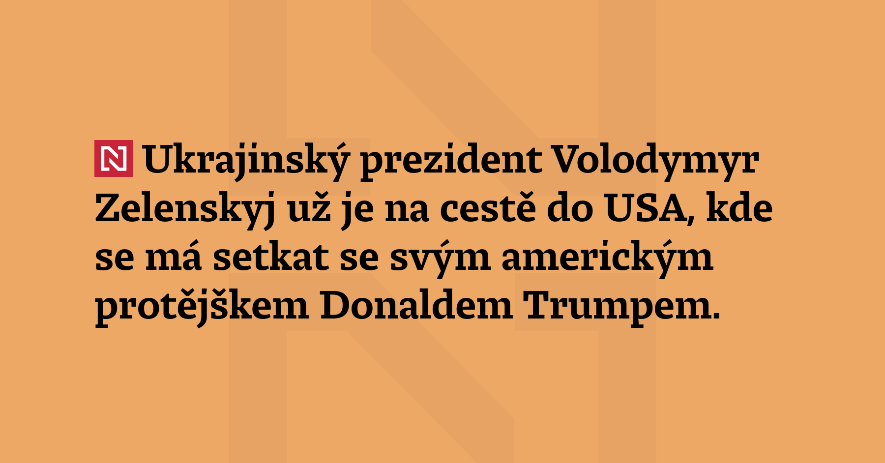 Ukrajinský prezident Volodymyr Zelenskyj už je na cestě do USA, kde se má setkat se svým americkým protějškem Donaldem Trumpem. Před schůzkou s Trumpem navštíví kanadského premiéra Marka Carneyho, mluvit bude také s evropskými lídry. (UNN)