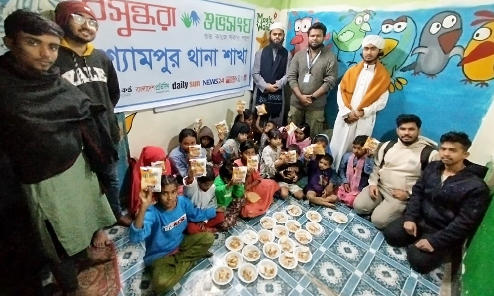 বসুন্ধরা শুভসংঘের উদ্যোগে পথশিশুদের মাঝে শীতের পিঠা বিতরণ