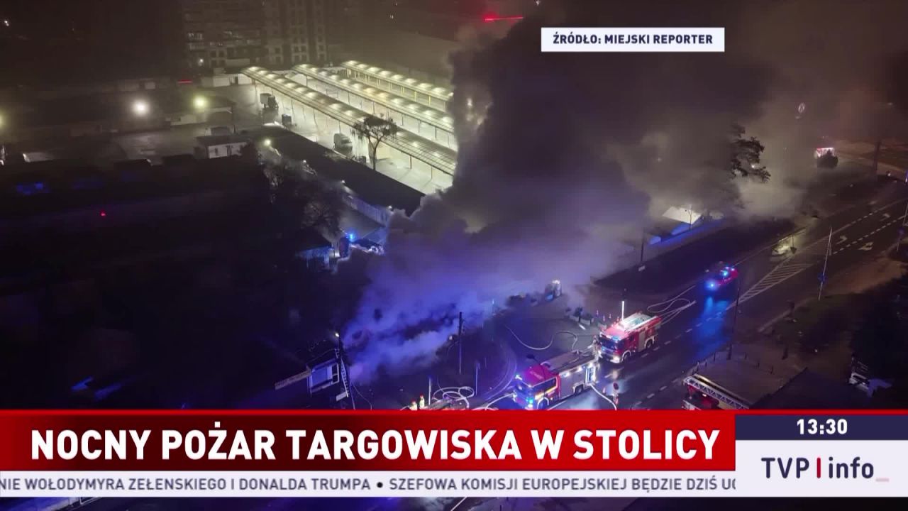 Mężczyzna, który mógł mieć związek z pożarem targowiska przy ulicy Bakalarskiej w Warszawie, został zatrzymany przez policję. W nocy płonął kompleks o powierzchni około dwóch tysięcy metrów kwadratowych – znajduje się tam ponad czterysta stoisk handlowych i lokali usługowych.