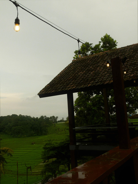 Waktu sore di kafe atas bukit, hujan turun tiba-tiba, sawah tetap bekerja, dan tawa anak-anak menyela sunyi. Cerita tentang jeda kecil, percakapan sederhana, dan rasa hangat yang tinggal usai hujan.